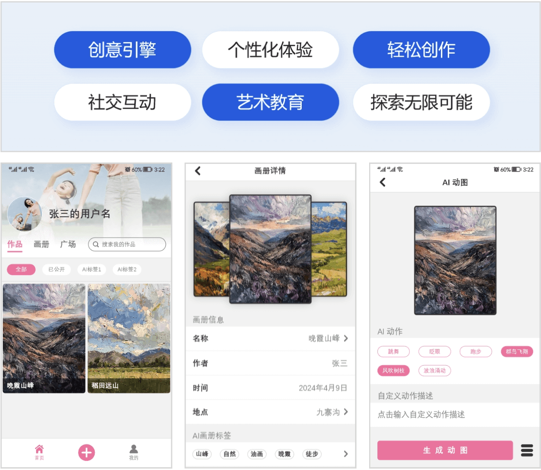 社交互動(dòng):創(chuàng)建藝術(shù)廣場(chǎng),鼓勵(lì)交流與分享。